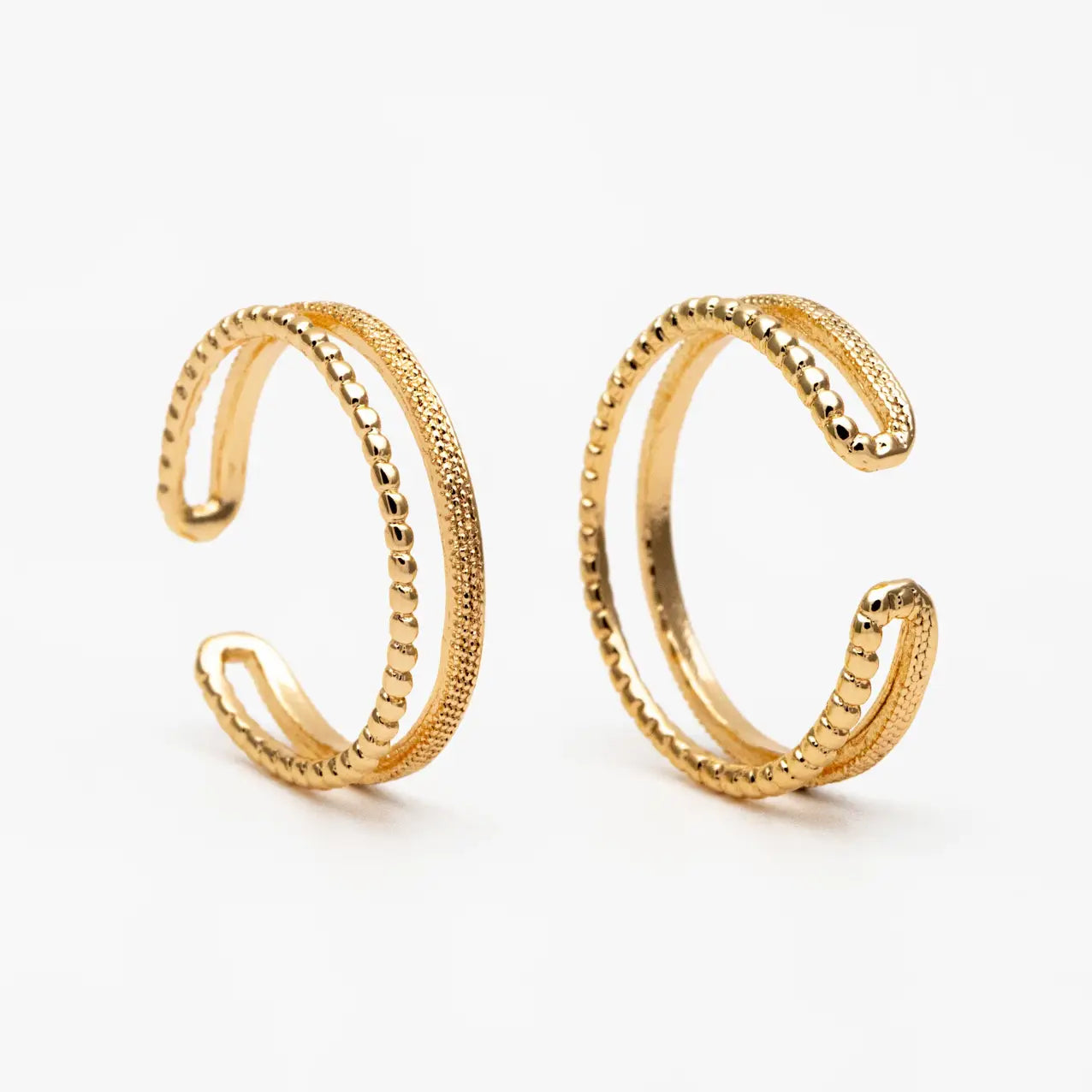 Add a playful twist to your style with these adjustable layering rings. Whether you prefer chunky boldness or delicate charm, these gold-plated brass rings are perfect for mixing, matching, or shining solo. Effortlessly stack them for a look that’s uniquely yours!