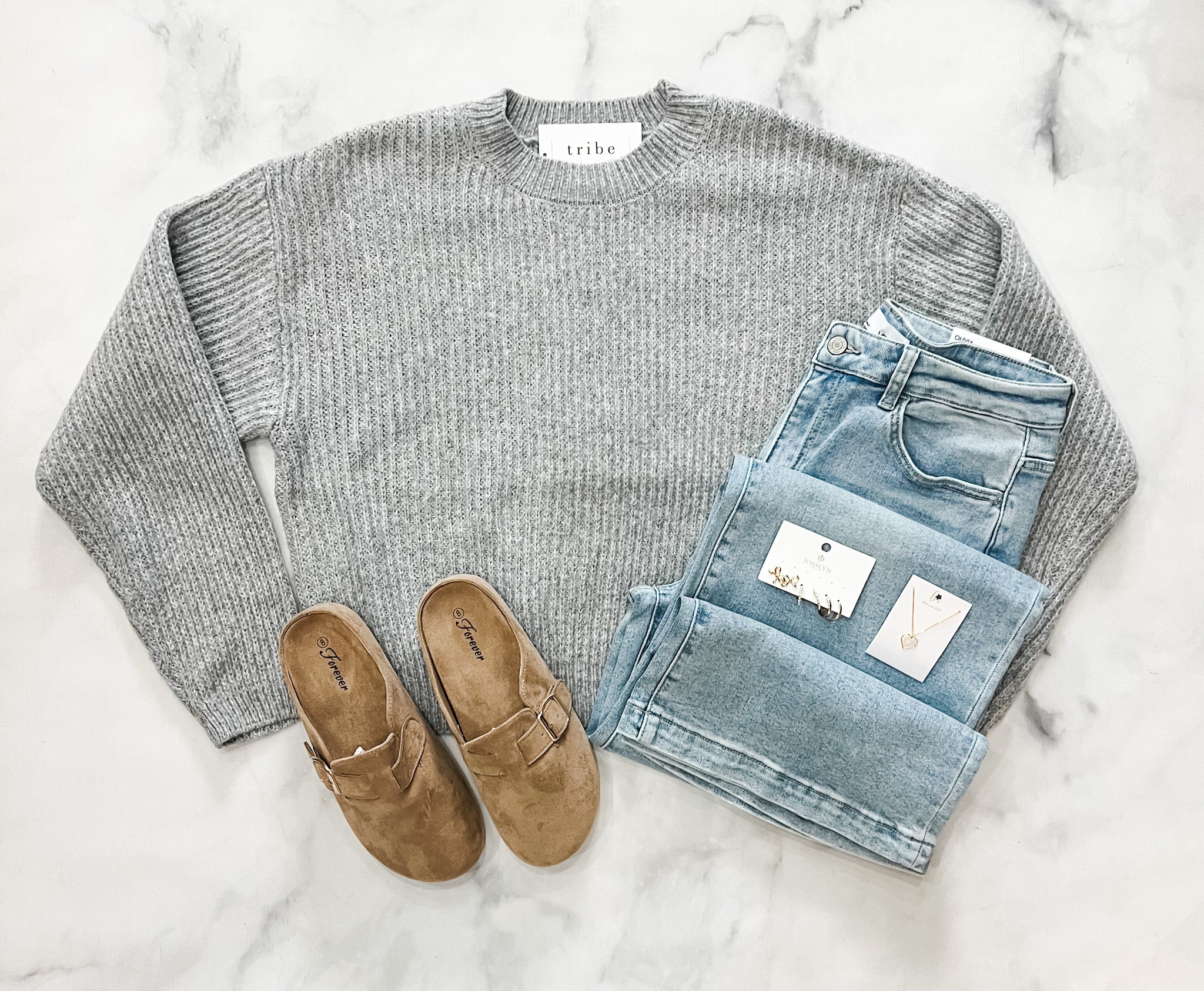 Meet the Rachel Ribbed Crew Neck Sweater—your new go-to for effortless style. The textured heather grey ribbed knit adds visual interest while the relaxed silhouette wraps you in cozy comfort. Perfect for lazy weekends or casual coffee runs, this versatile piece transitions seamlessly through seasons. Pair it with high-waisted denim for a laid-back vibe, or throw it over a crisp button-down when you're ready to elevate your look. Simple, comfortable, and endlessly stylish!