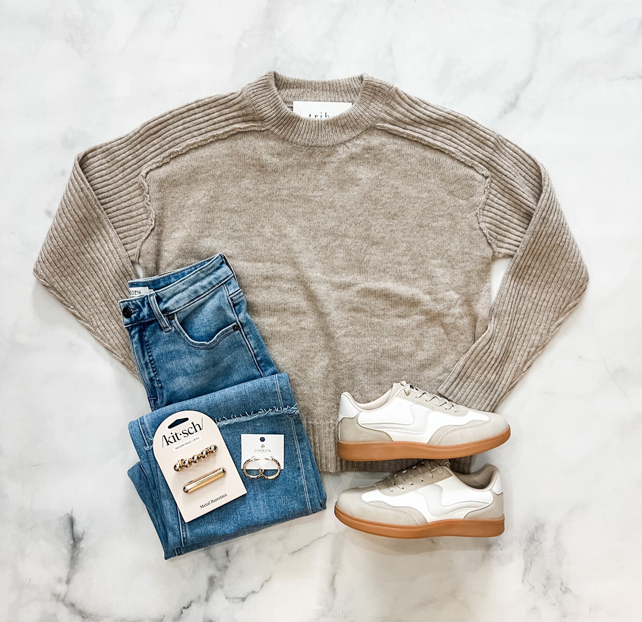 Slip into cozy comfort with the Aubree sweater, your new go-to for effortless style. This pullover features signature raglan sleeves and a textured rib detail that adds visual interest to a timeless crew neckline. Crafted from super soft fabric, it's designed with a relaxed fit that feels like a warm hug. Perfect for layering or wearing solo, this sweater brings that "just right" vibe to any casual outfit!