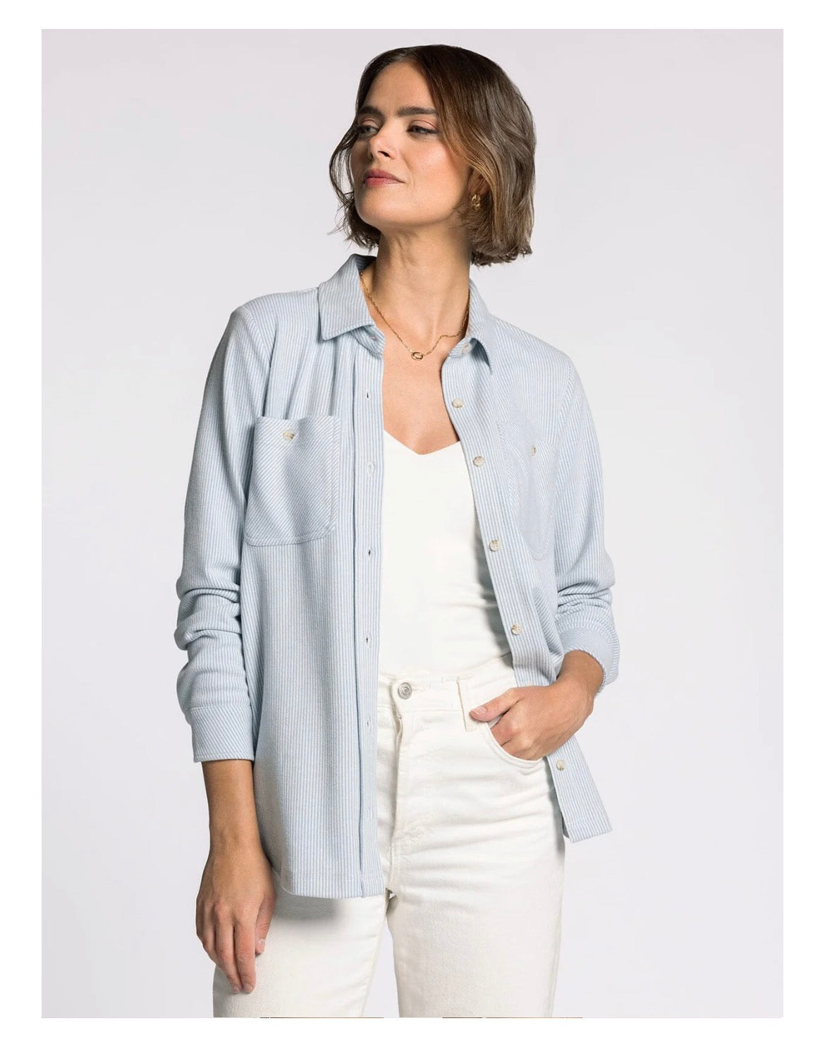 Crisp stripes meet casual cool with the Gianna Light Blue Stripe Top. This playful button-front shirt features a classic collared neckline and dual chest pockets—perfect for stashing your essentials or just looking effortlessly put-together. The light blue and white stripe pattern brings a fresh, breezy vibe to your everyday rotation. Dress it up with tailored trousers or keep it relaxed with your favorite denim.