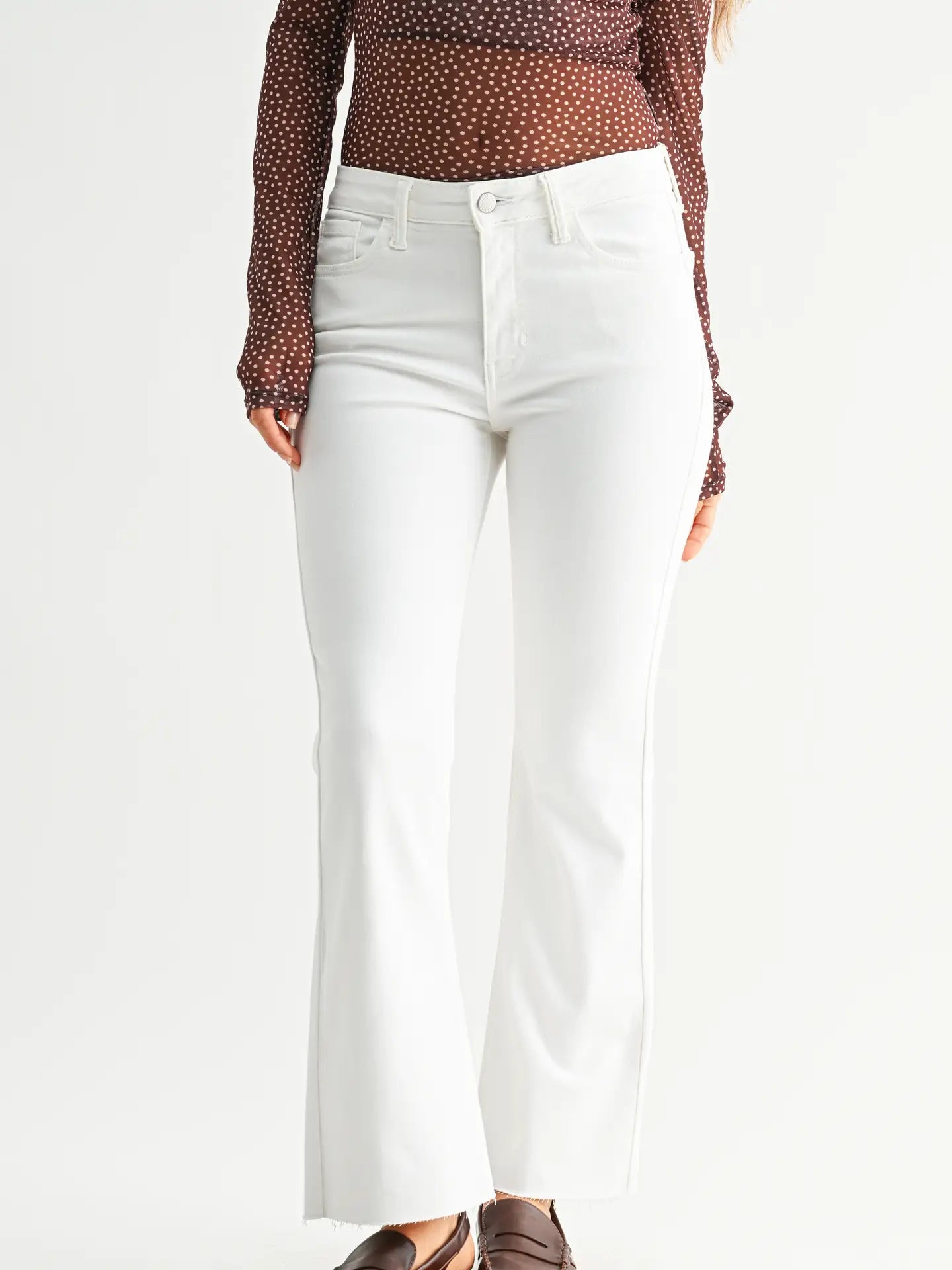 Step into the spotlight with the Riley Cropped White Flare—your new go-to for effortless style. This light denim beauty features a flattering lower rise and a subtle flare that elongates your legs, while the cropped length keeps all eyes on your favorite footwear. Raw hems add an edgy, modern touch that feels fresh and intentional. Perfect for pairing with sneakers, boots, or sandals, these jeans deliver that coveted laid-back cool factor with just the right amount of attitude.
