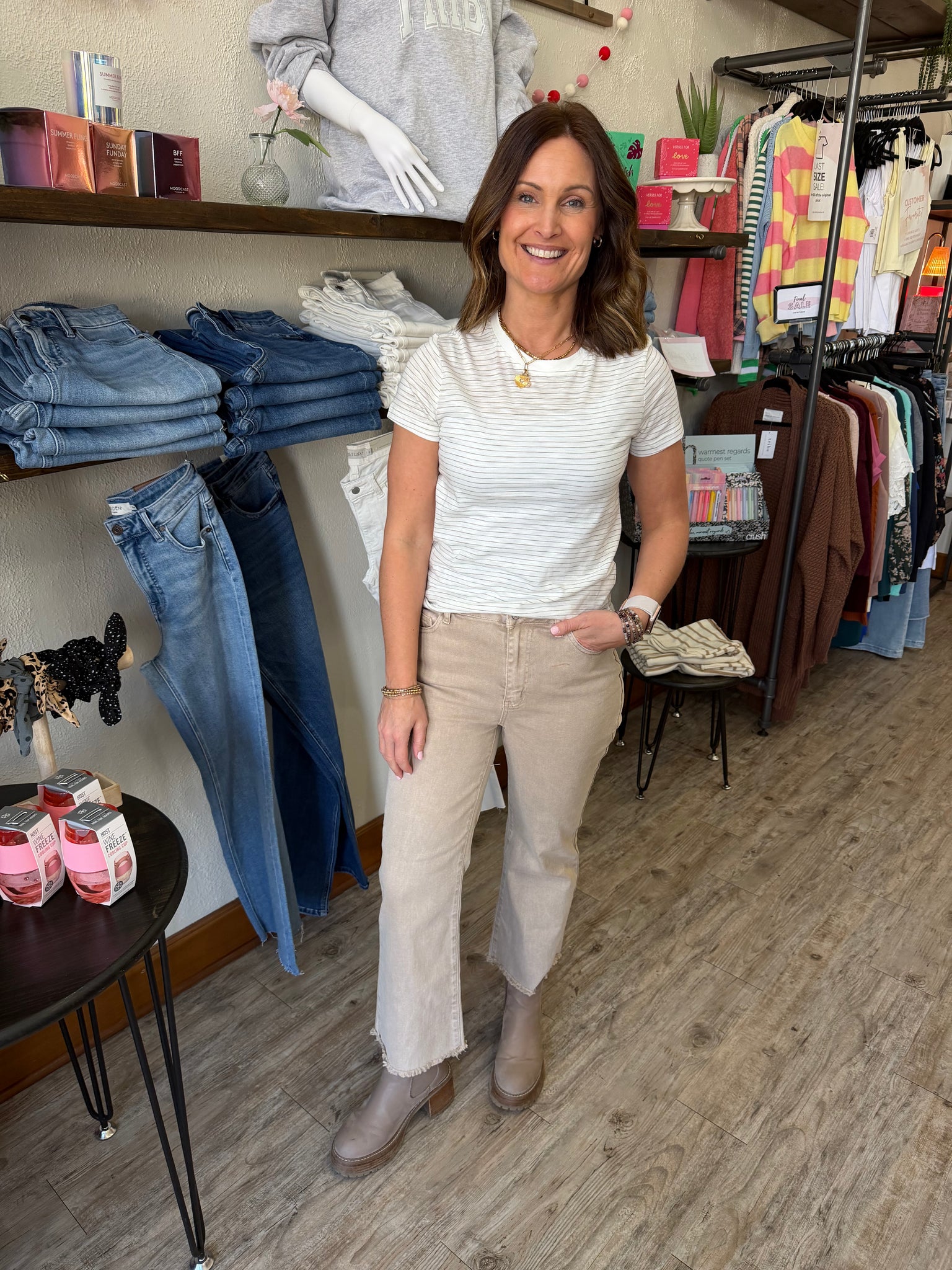 Rock that vintage vibe with the Veronica High Waist Frayed Hem Pants—where acid-washed charm meets modern comfort. These light taupe cropped beauties feature a flattering high waist and perfectly distressed frayed hem for effortless cool-girl energy. With plenty of stretch built in, you'll move freely all day long. Fair warning: each pair is totally one-of-a-kind with unique color variations and finishing details, so they are as individual as you are!
