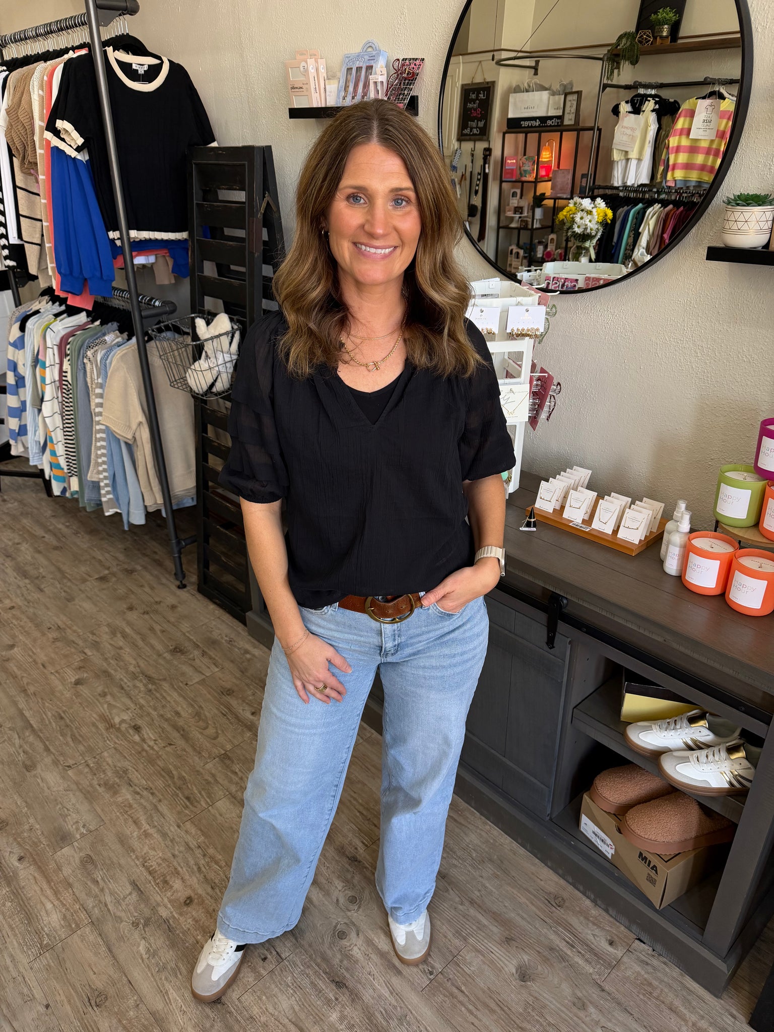 Chelsea wears a medium and Sarah wears a small.