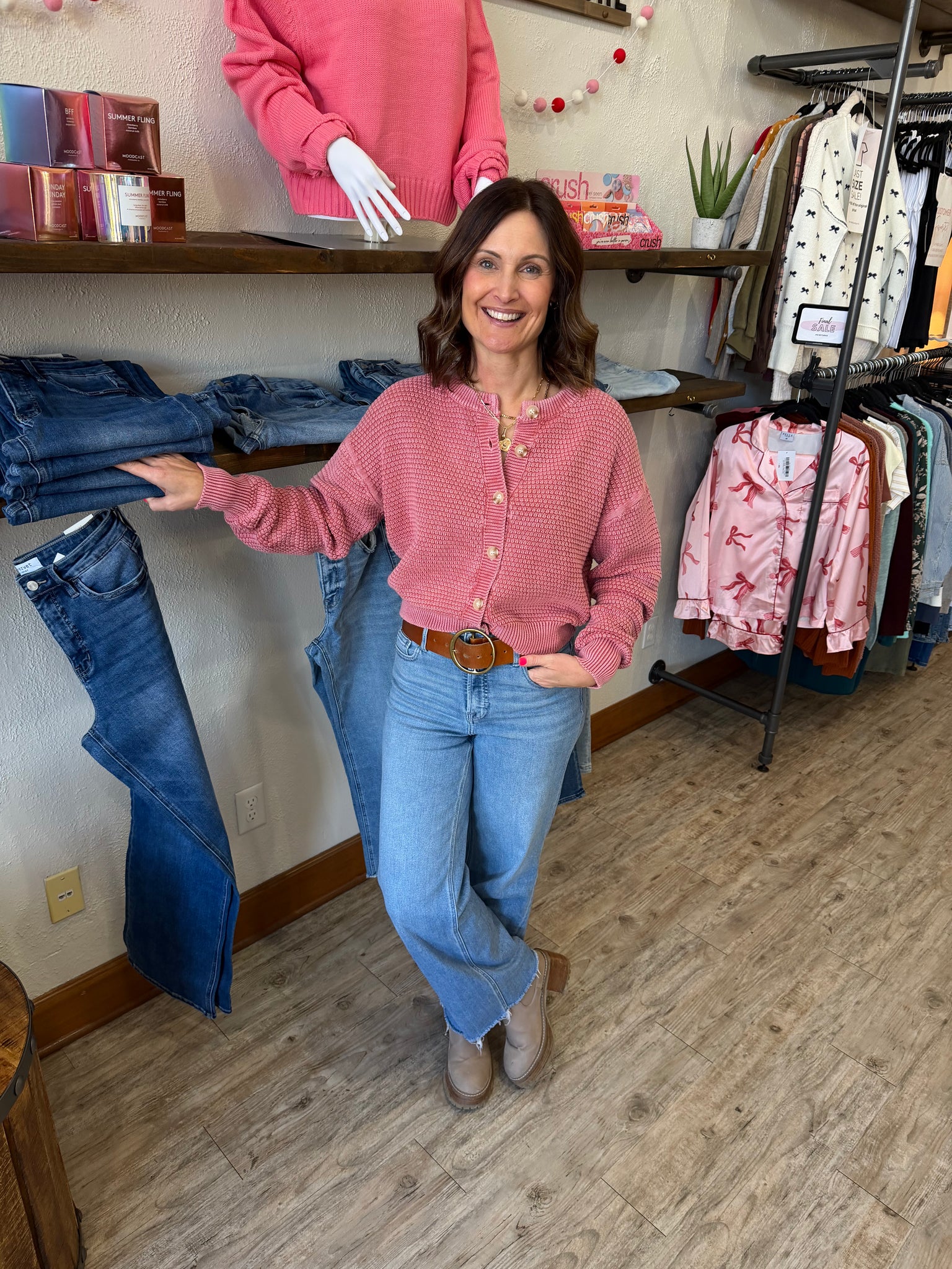 Introducing the Paula Mineral Washed Cardi—your new go-to layer for effortless style! This cozy cotton cable knit cardigan features a charming button-down front and a relaxed round neckline. Ribbed detailing at the neck, placket, and cuffs keeps everything polished, while long sleeves provide the perfect amount of coverage. The mineral-washed finish gives it that perfectly lived-in, vintage vibe that makes getting dressed way more fun!