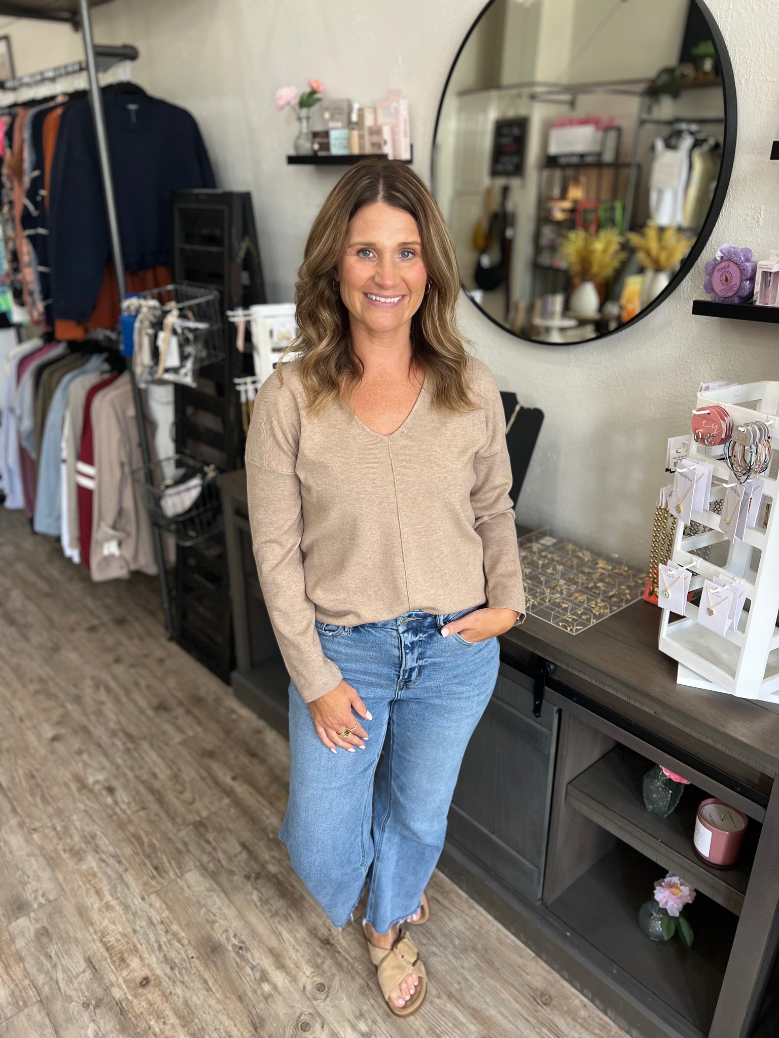 Wrap yourself in cozy charm with the Kristen Solid V Neck Front Seam Sweater. This super soft, lightweight mocha sweater features a stylish front seam detail that adds a subtle twist to your everyday look. Perfect for layering or wearing solo, it brings warmth without weight and a playful touch to your casual wardrobe!