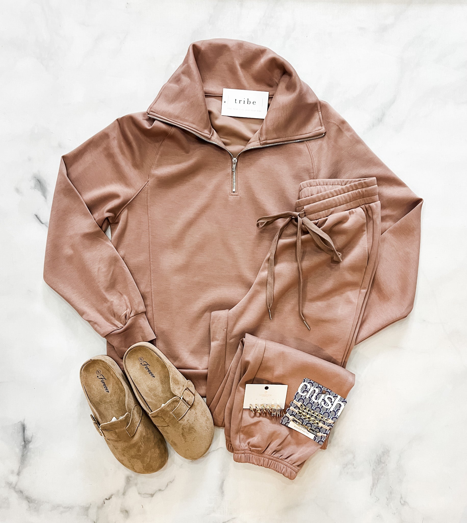 Elevate your comfort game with the Tasha Activewear Set—a dynamic duo designed for those who refuse to compromise on style. This 2-piece collection pairs a cozy quarter-zip top with perfectly matched joggers, available in sleek black or warm taupe. Whether you're settling in for a relaxed day at home or stepping out for casual adventures, this set has you covered. The wrinkle-resistant fabric means you'll stay looking polished and put-together, no matter where your day takes you. Comfort meets versatility in one effortless package!